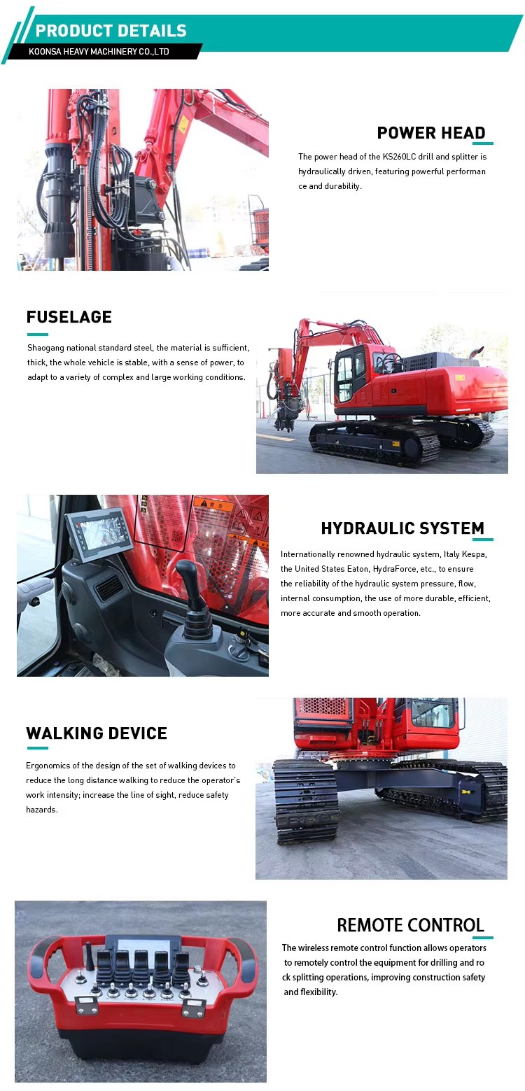1. The power head of the KS260lc drill and splitter is hydraulically driven, featuring powerful performance and durability